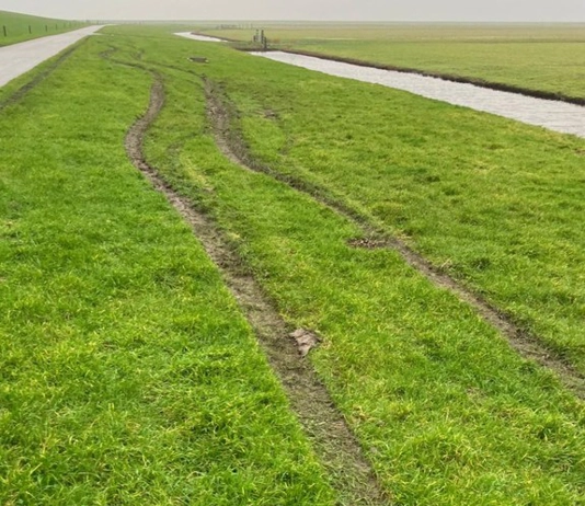 De gaten en sporen vormen ook een gevaar voor de medewerkers als die met tractoren onderhoud uitvoeren op de dijk.